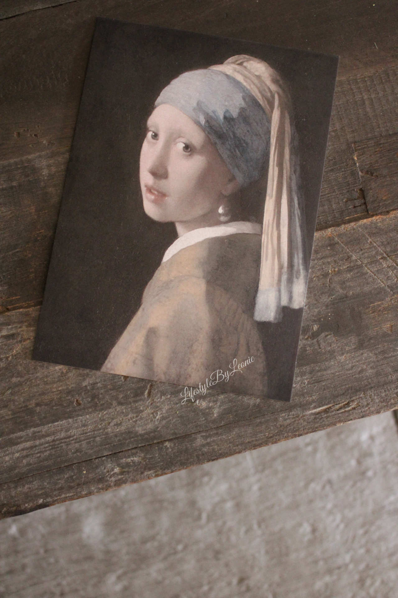 Sobere kaart met een opdruk van het meisje met de parel. De kaart is 21 x 15 cm groot.