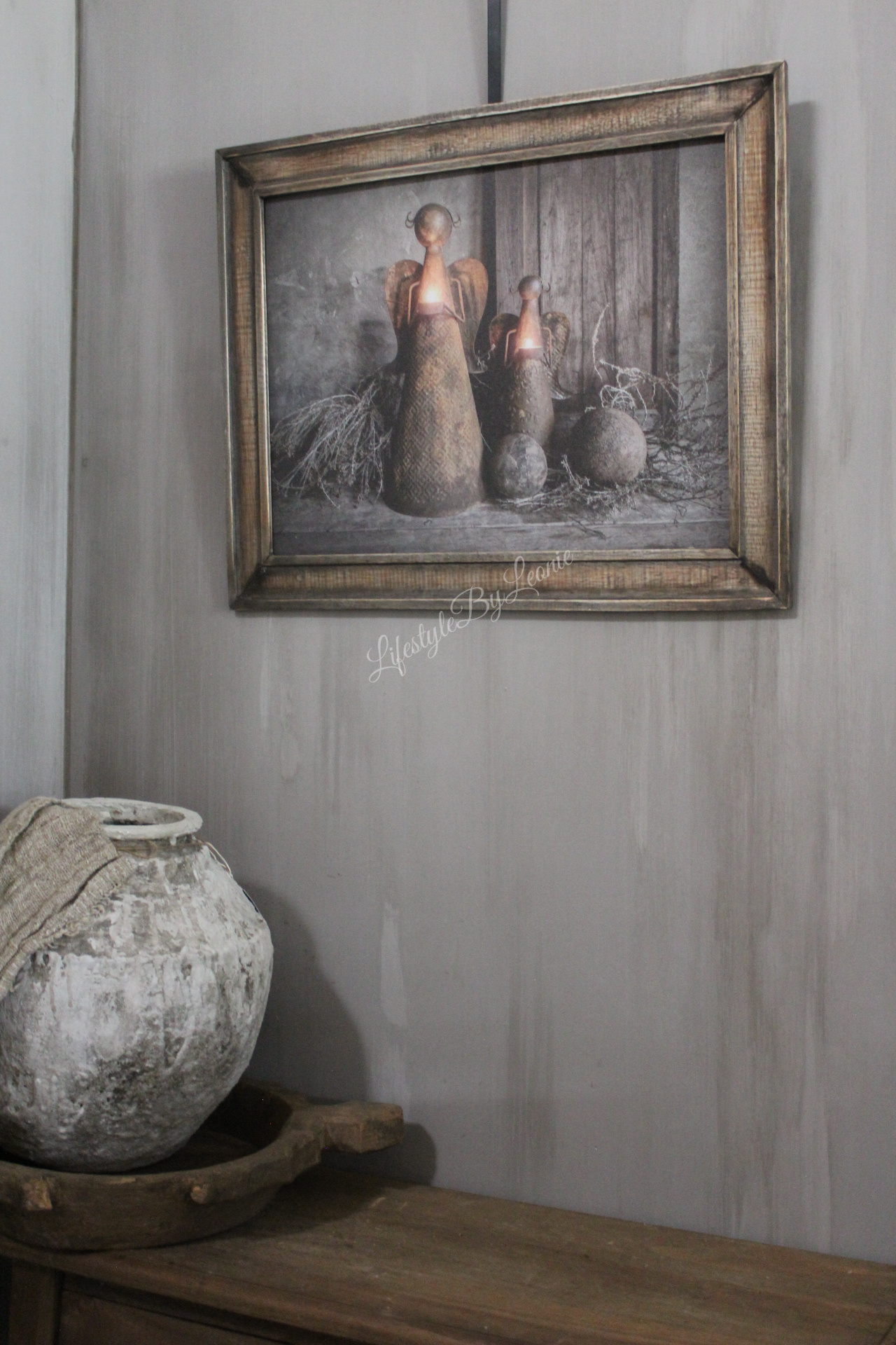 Sobere prent in houten lijst Angels 66 x 52 cm