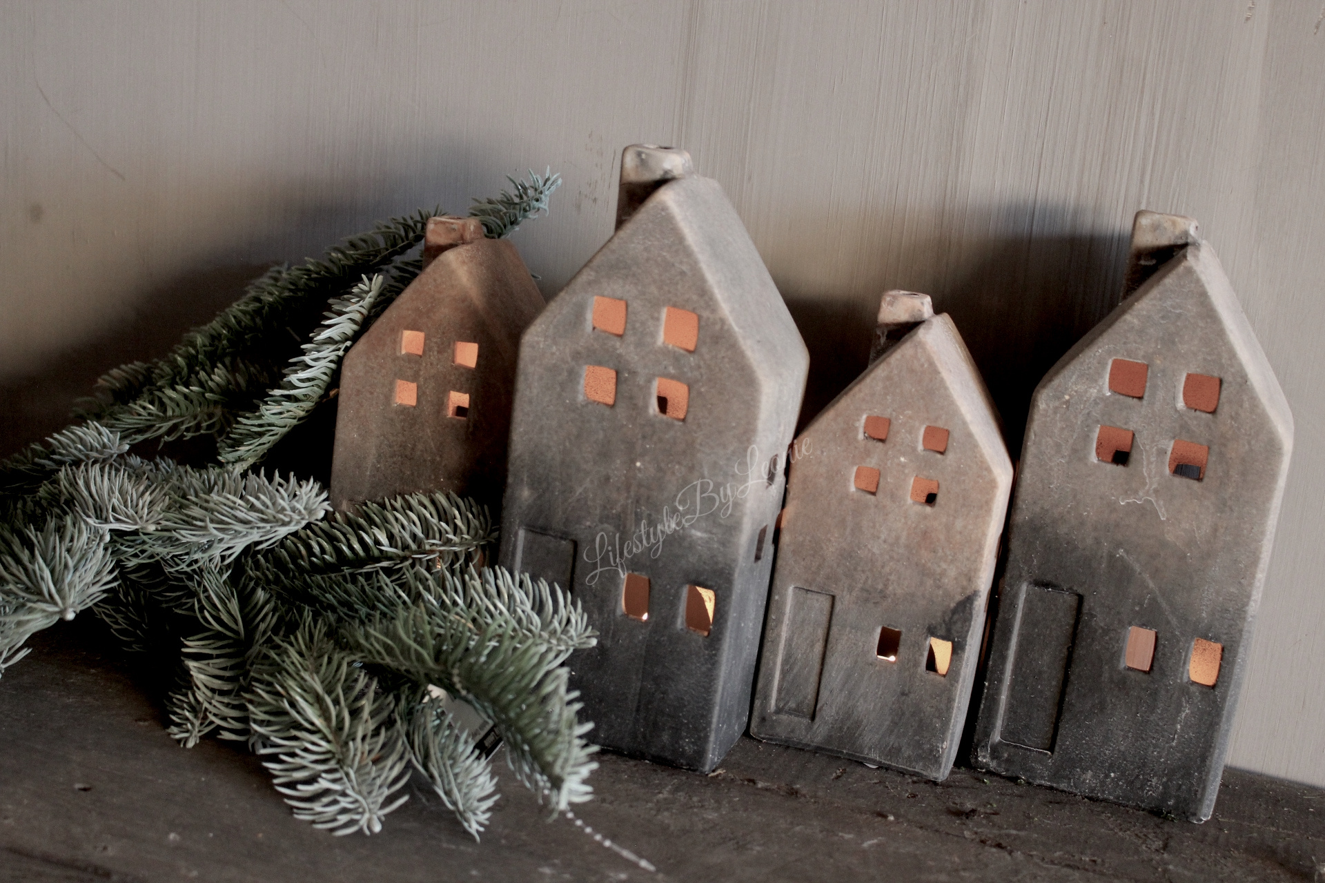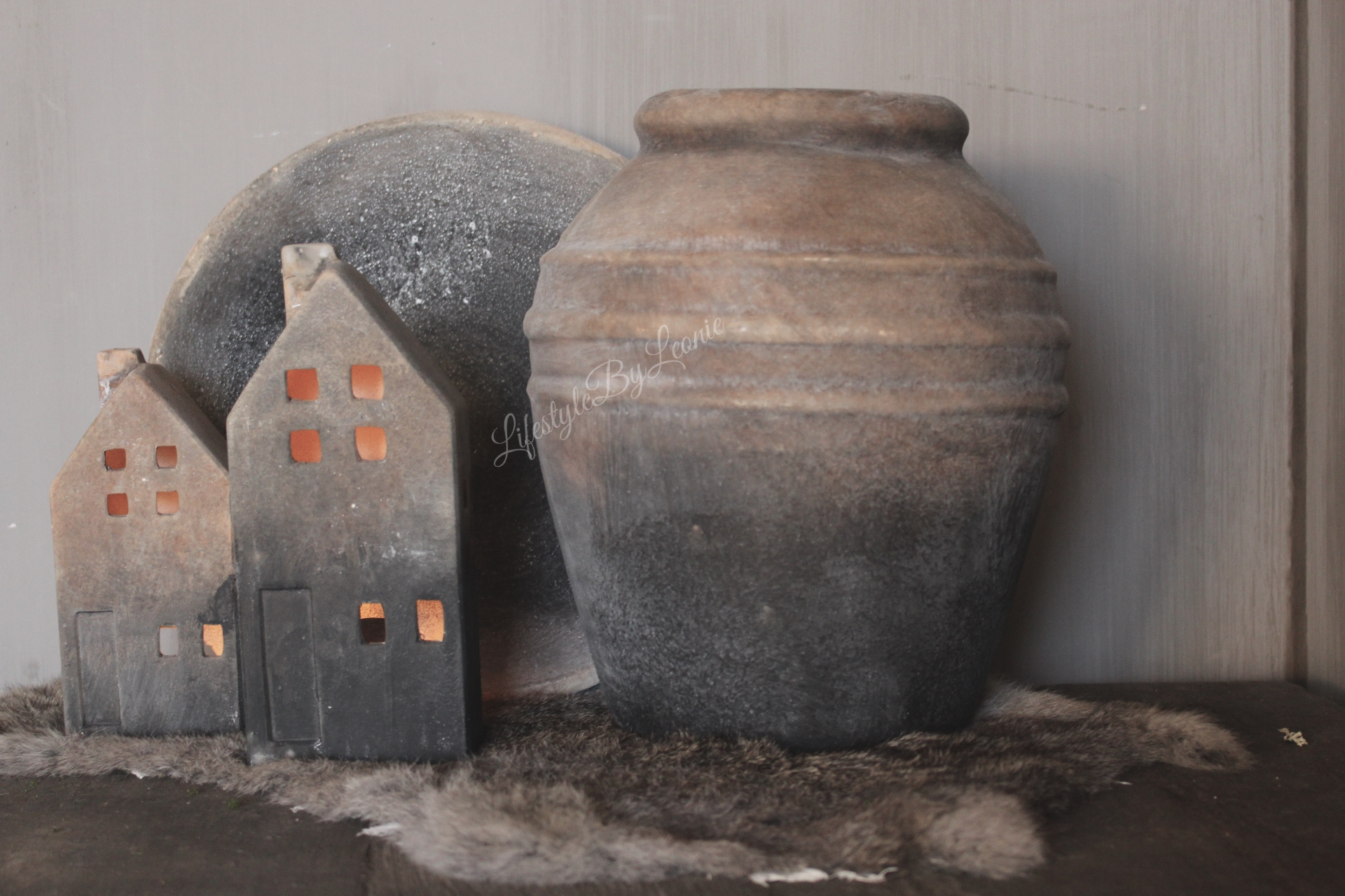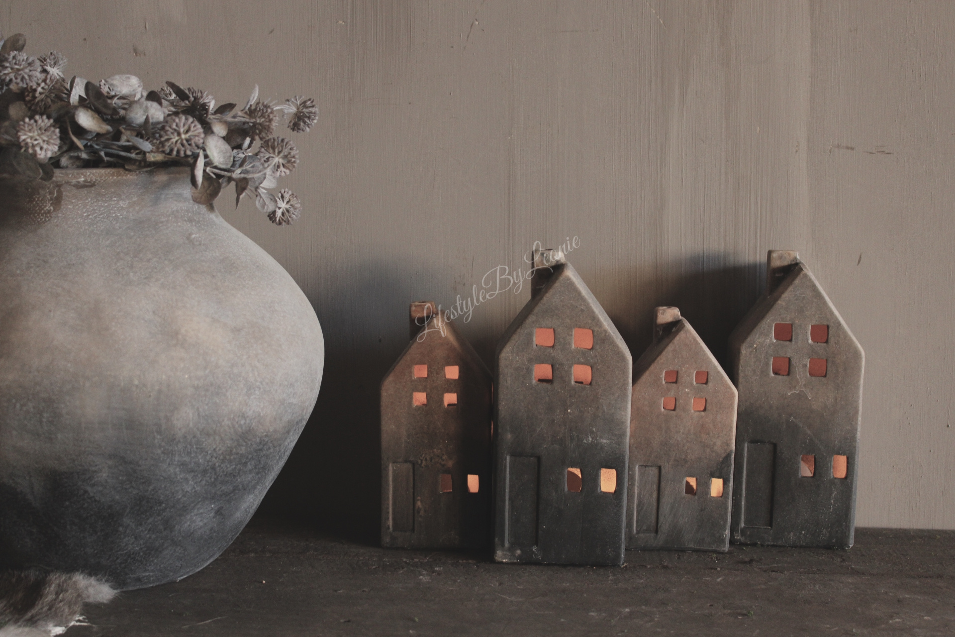 Stenen huisje kandelaar Reuben grey/brown 20cm