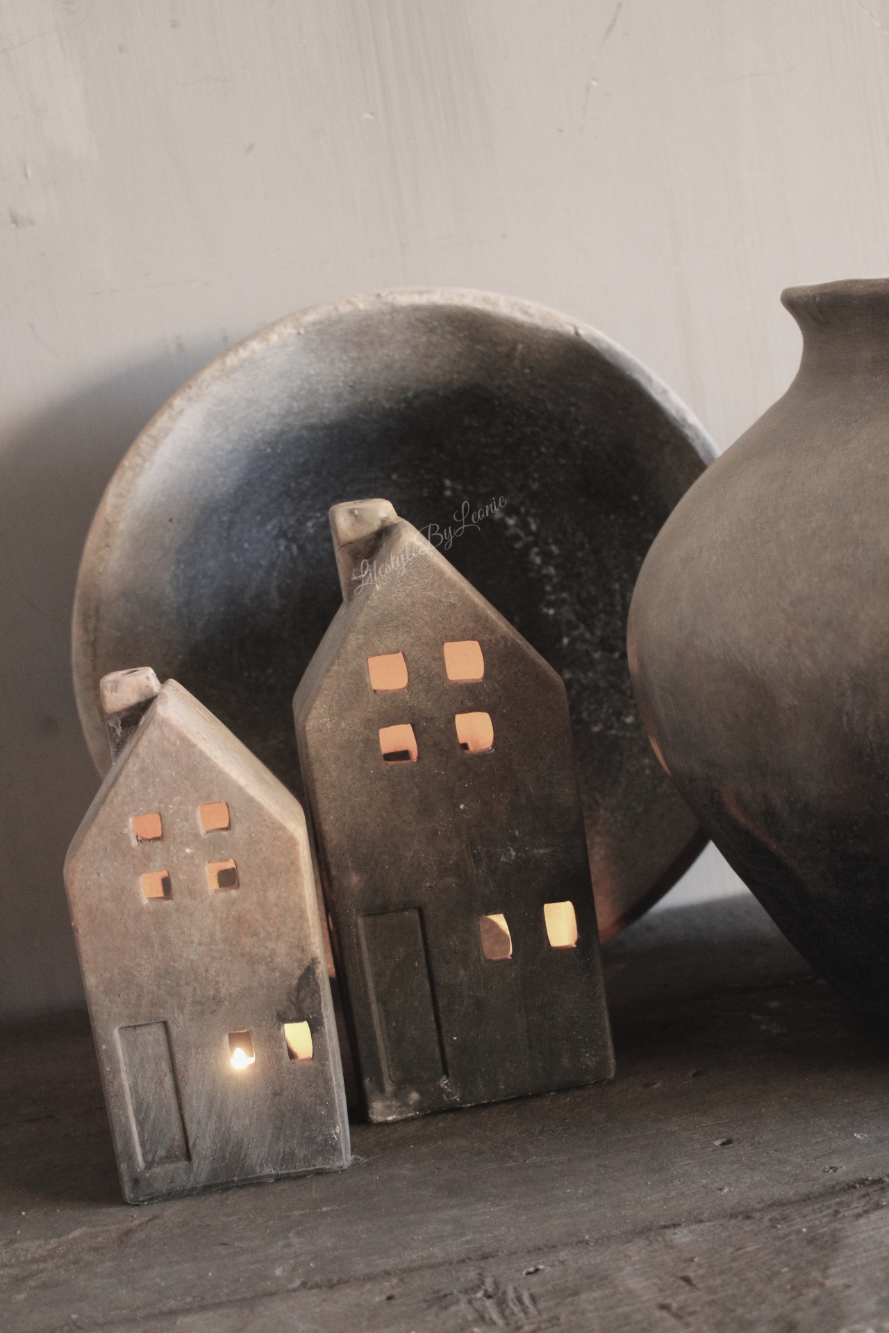Stenen huisje kandelaar Reuben grey/brown 17cm
