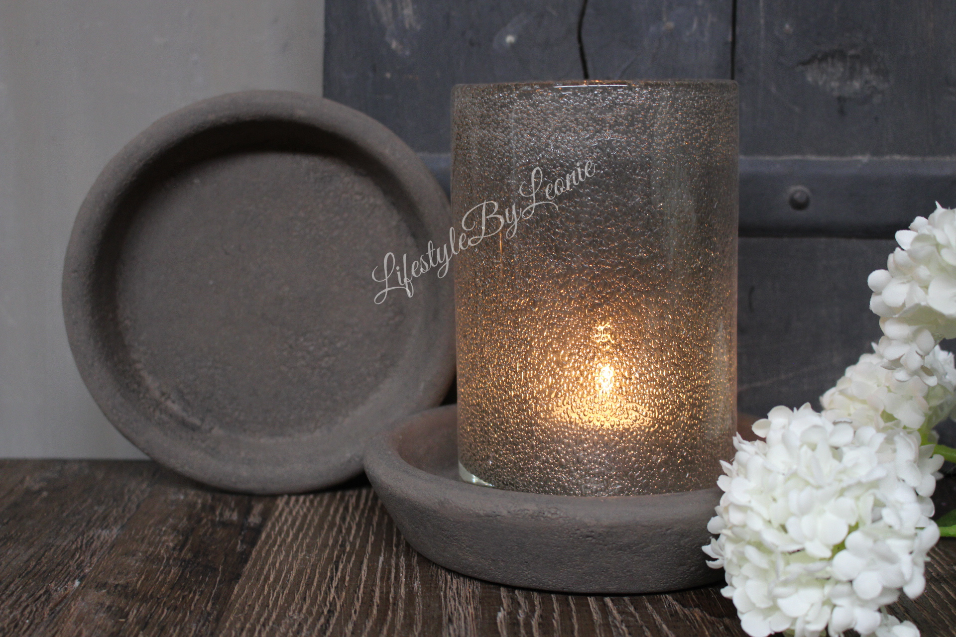 Mooir stenen plate in een leem kleur. De plate is 15 cm groot.