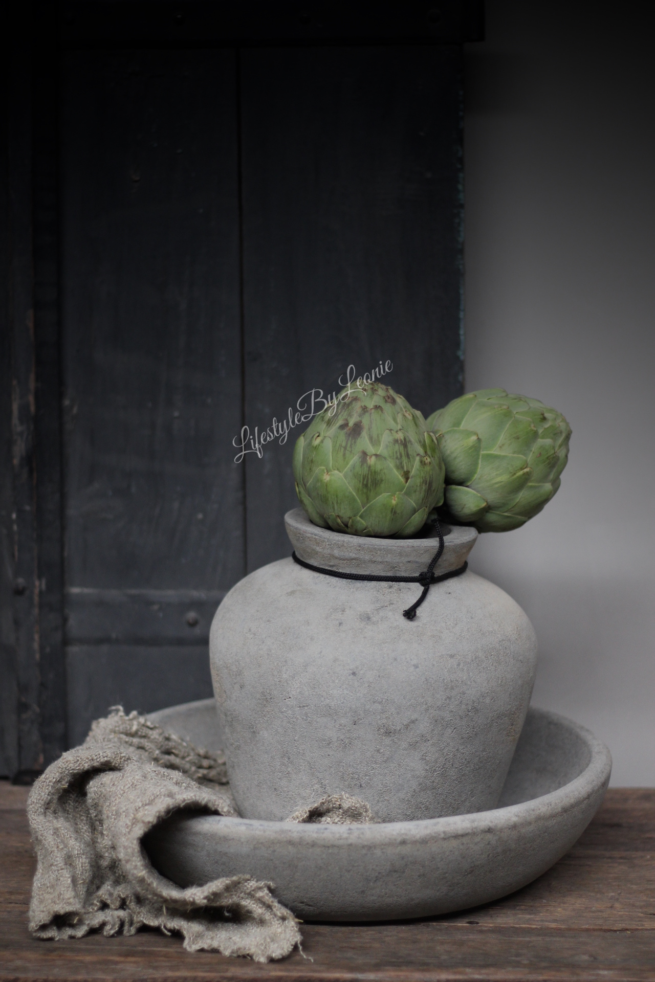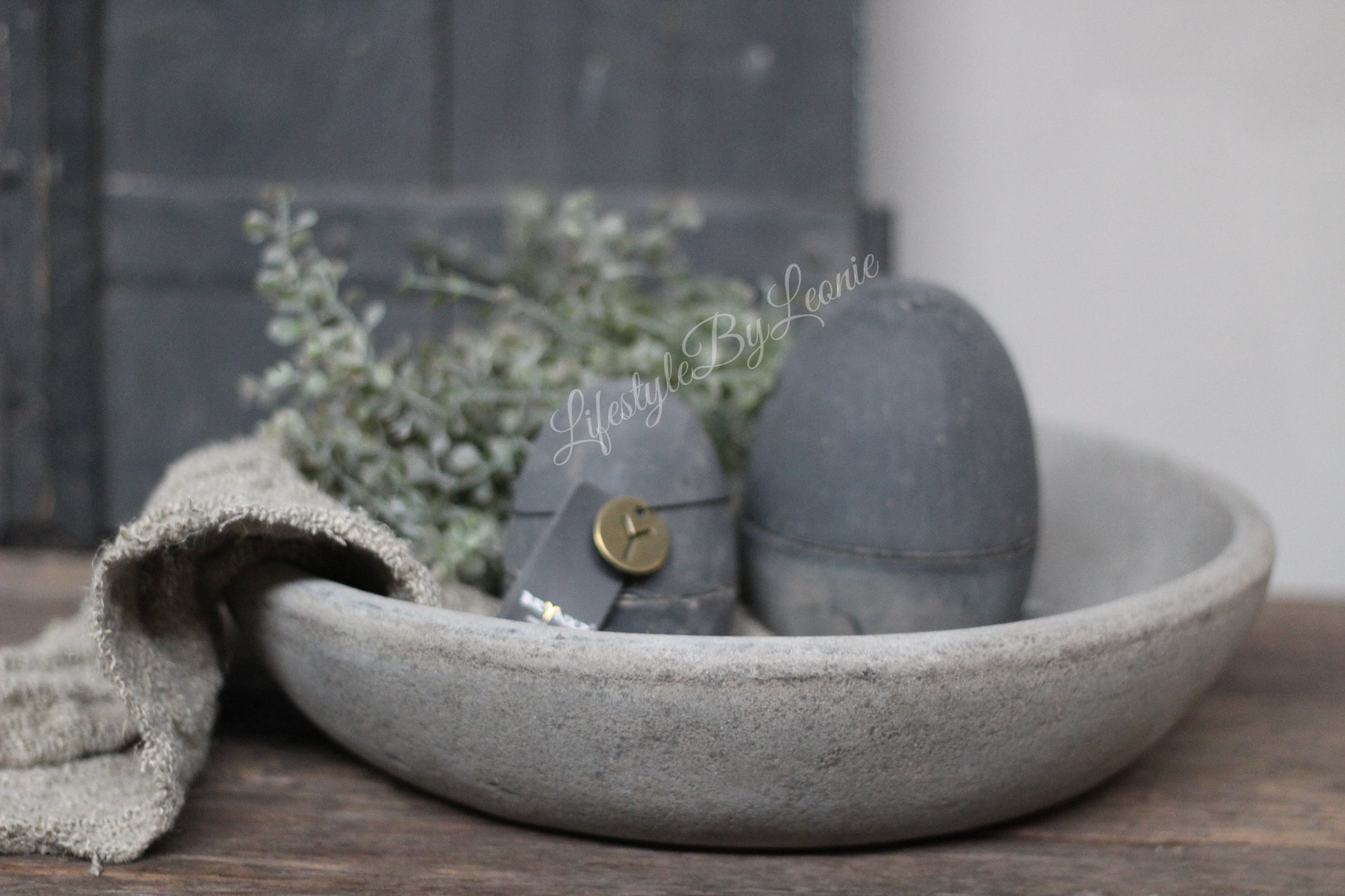 Mooie grijze stenen schaal. De schaal heeft een doorsnede van 34 cm. Leuk met decoratie of een oude kruik.