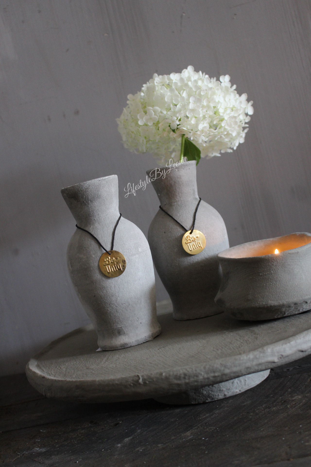 Mooi 16 cm hoog sierlijk stenen vaasje in een lichte grijze kleur. Leuk om te combineren met de andere producten uit de Organic Grey collectie.