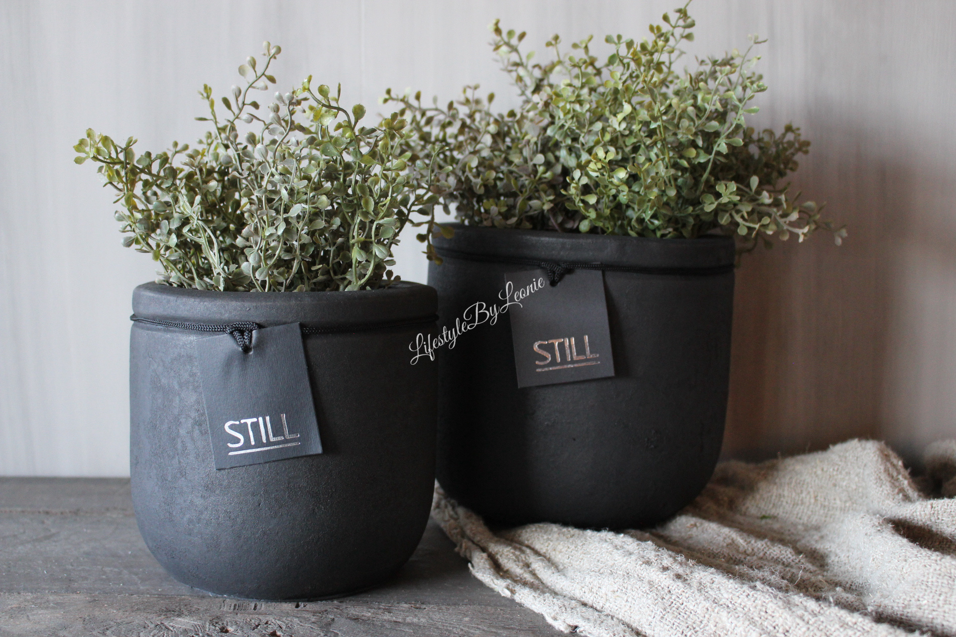 Mooie ronde stenen pot in zwarte kleur van Still