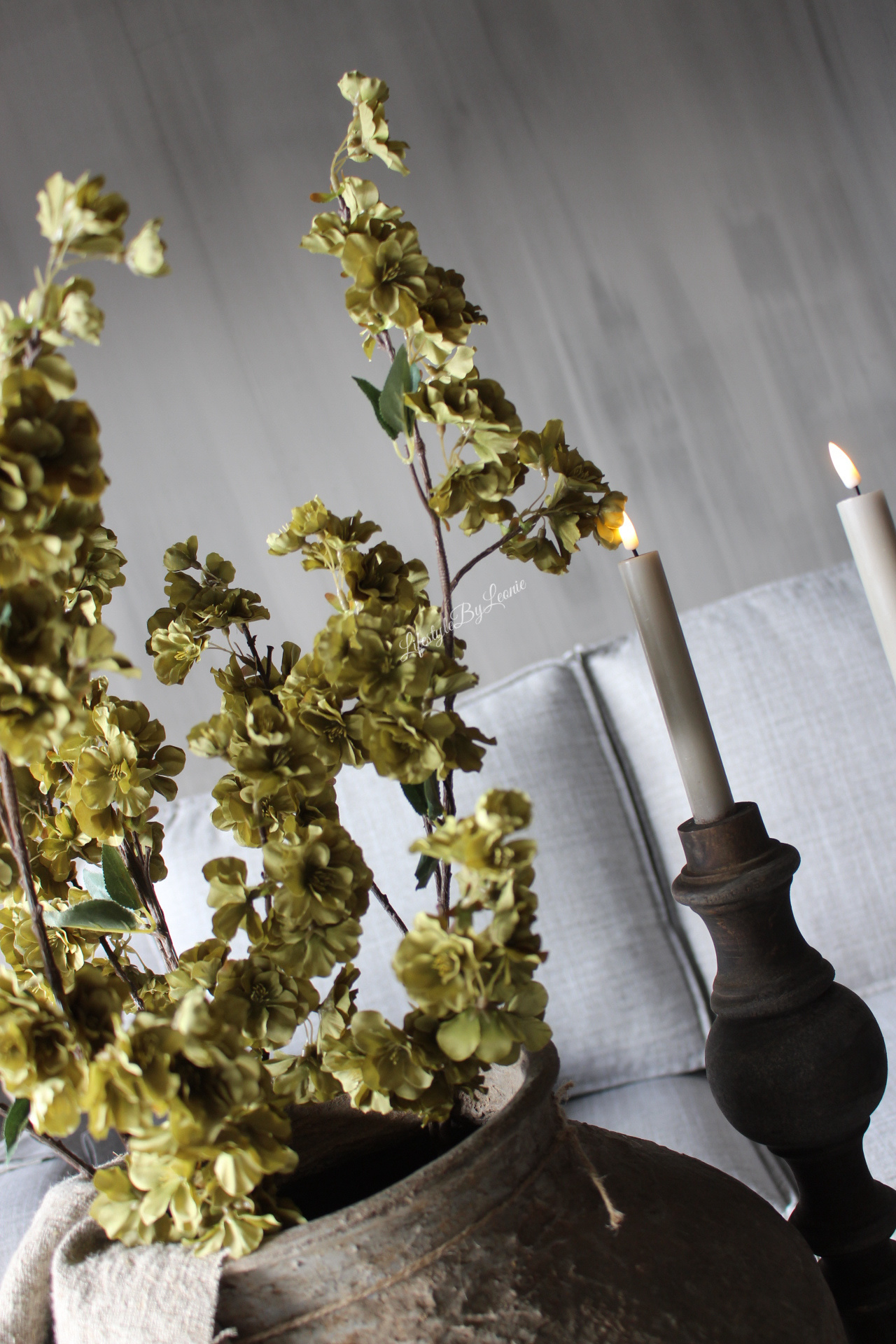 Volle prunus Sakura tak in zacht groene kleur