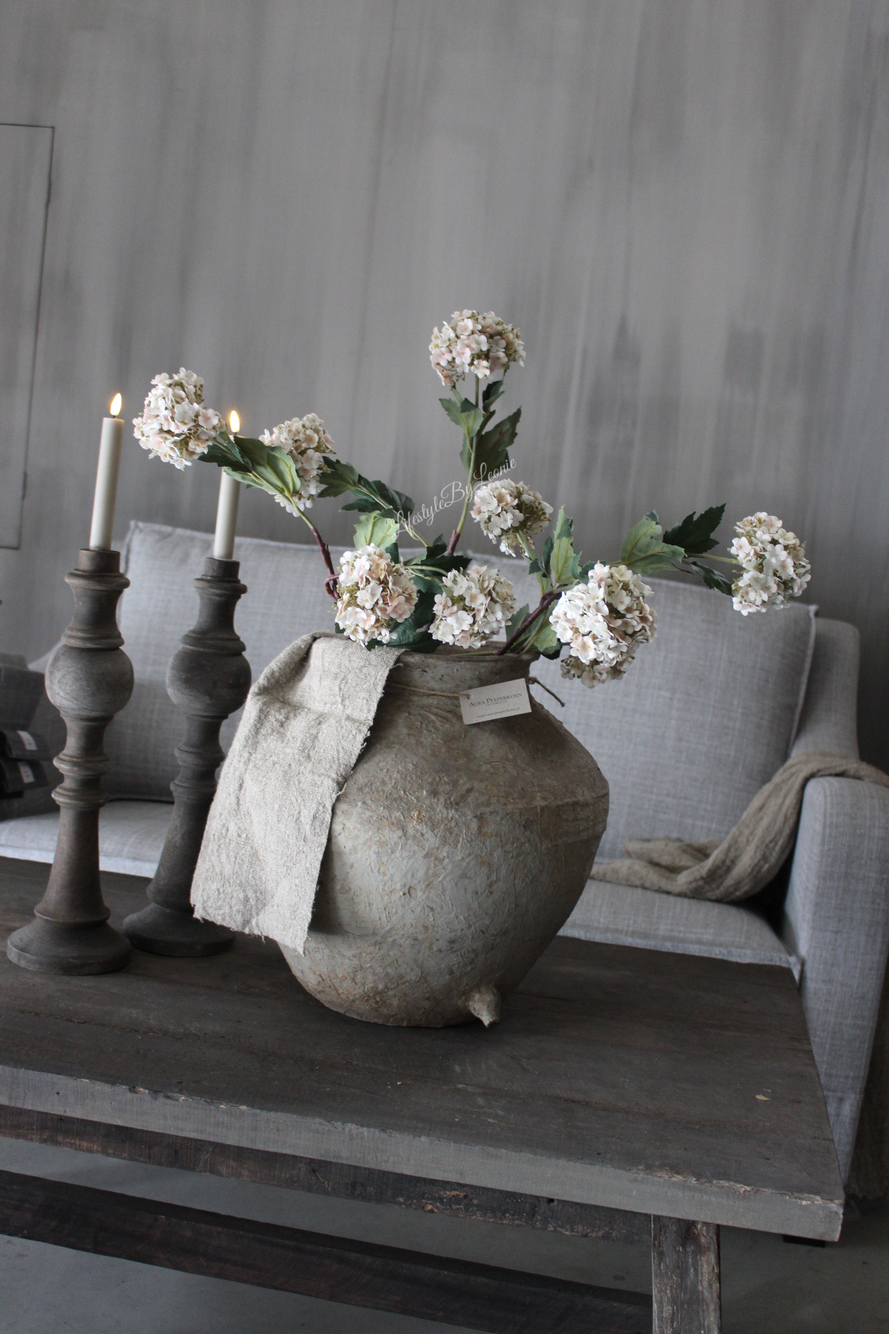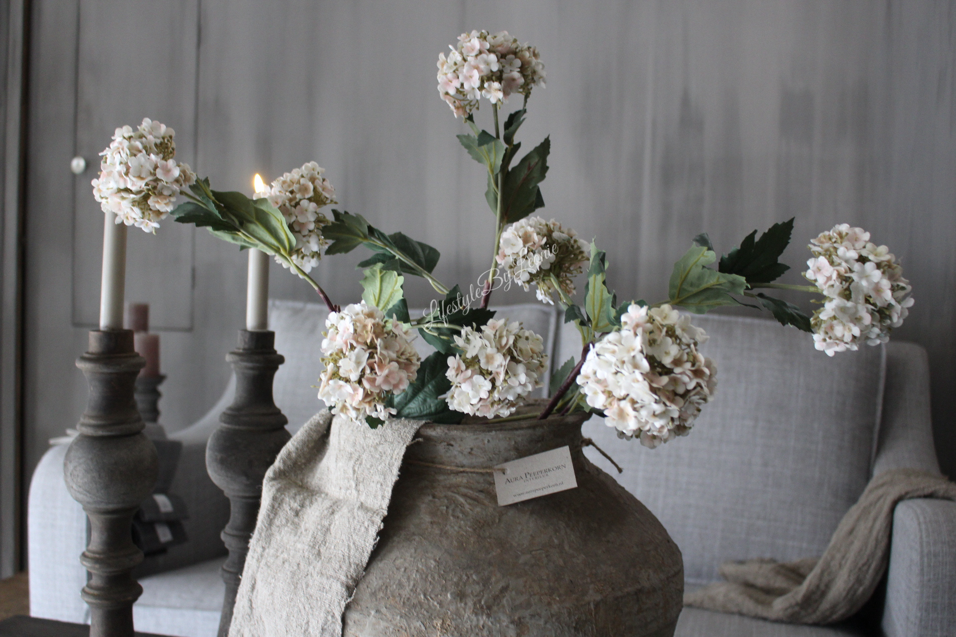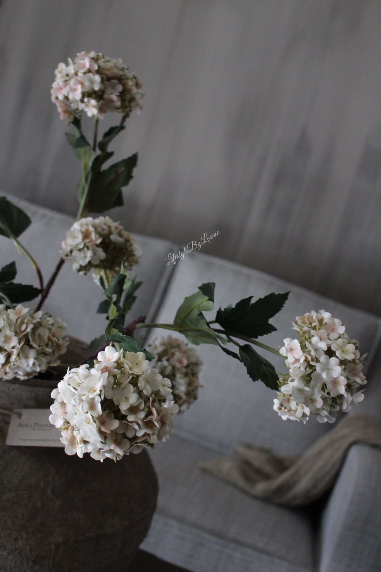 Prachtige volle viburnum / sneeuwbal tak in subtiele roze tint