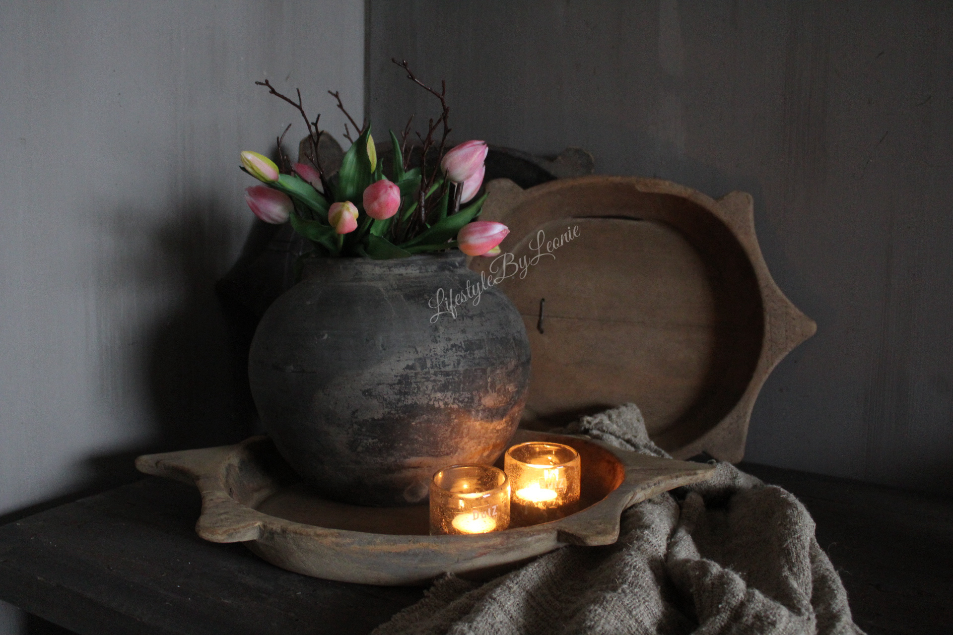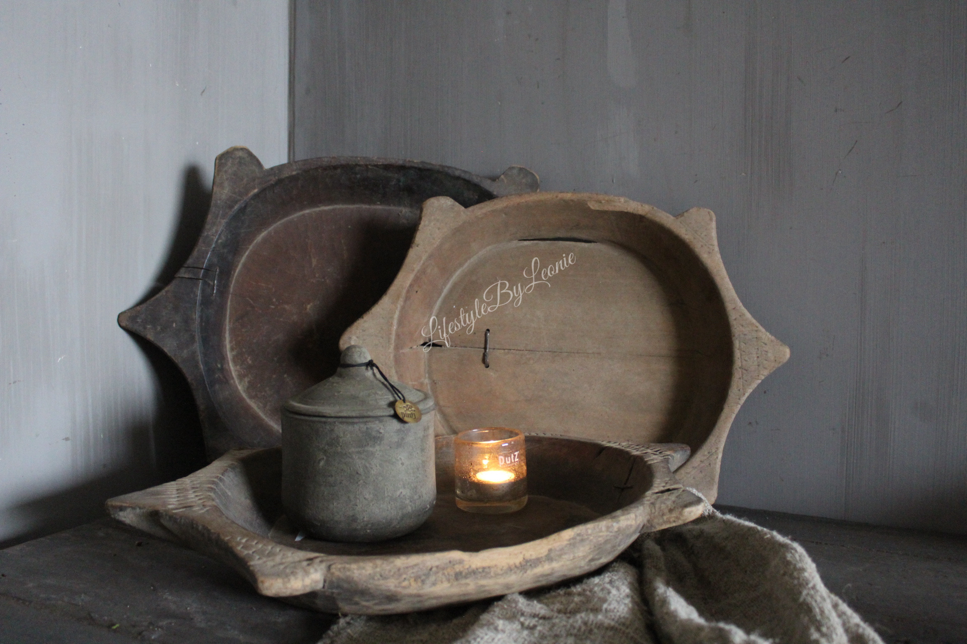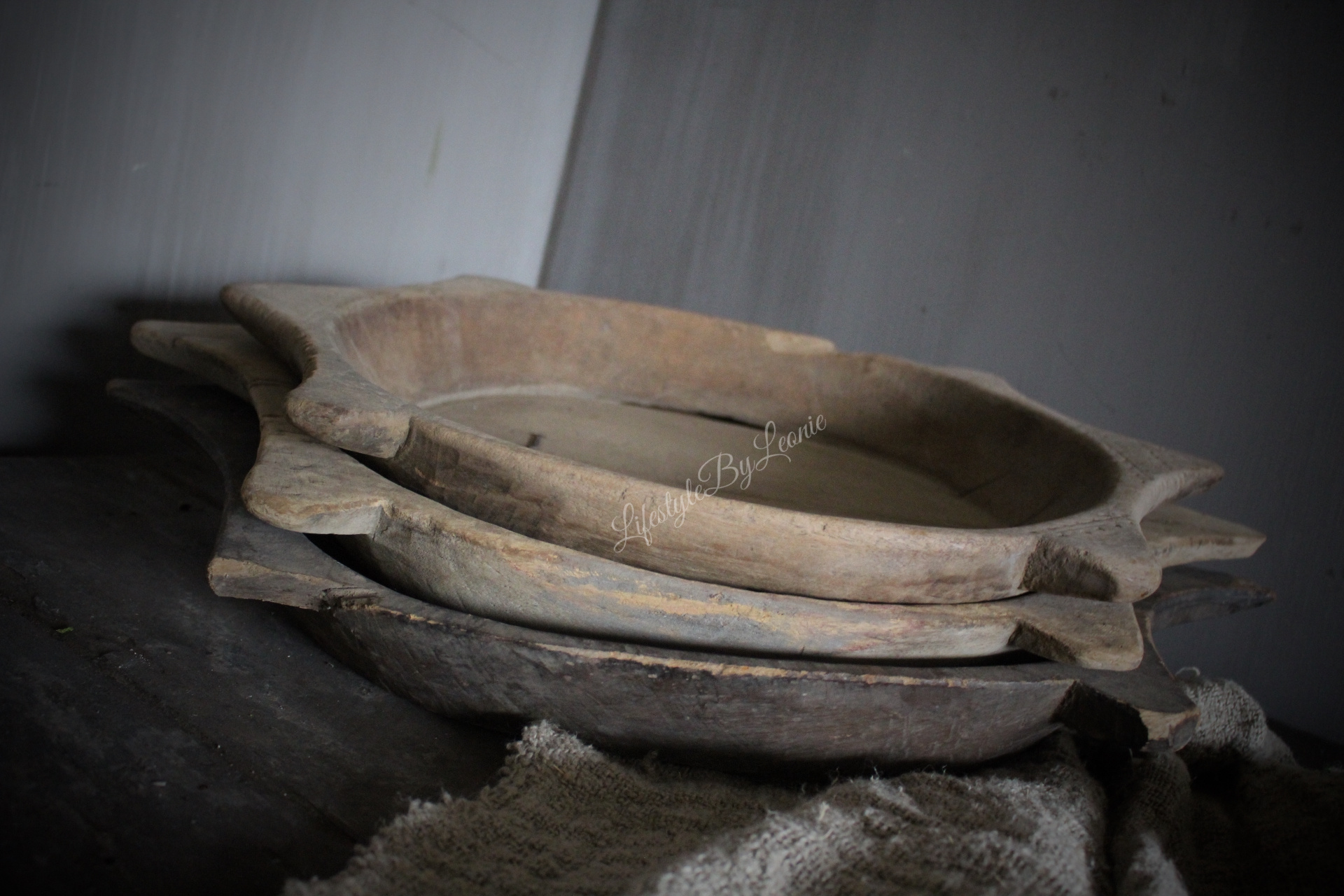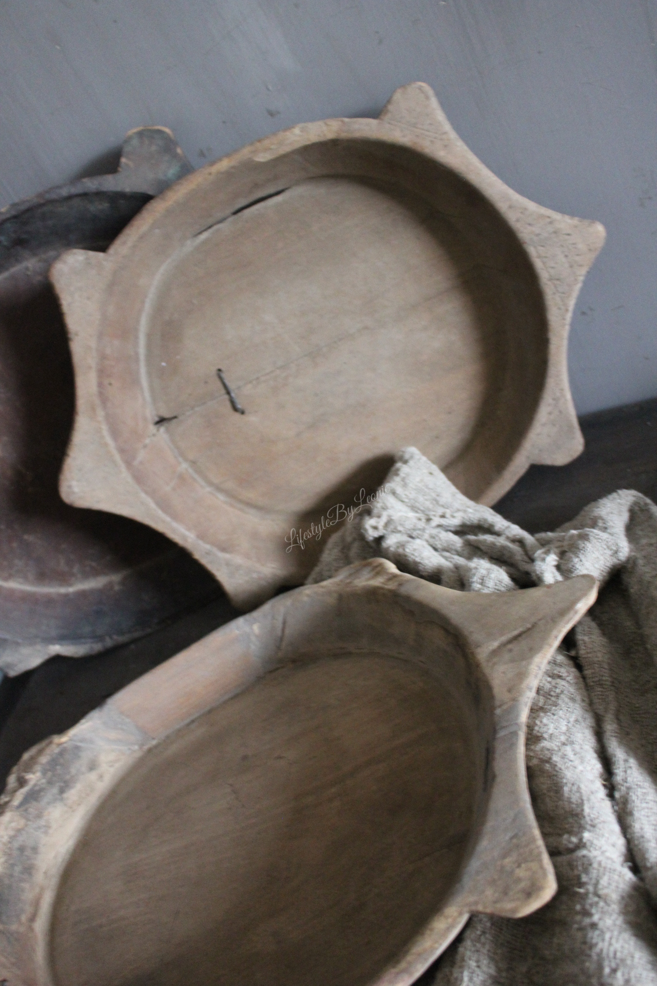 Unieke houten Chapati schaal. Elke schaal is uniek, oud en gebruikt. De schaal is ongeveer 50 cm breed.