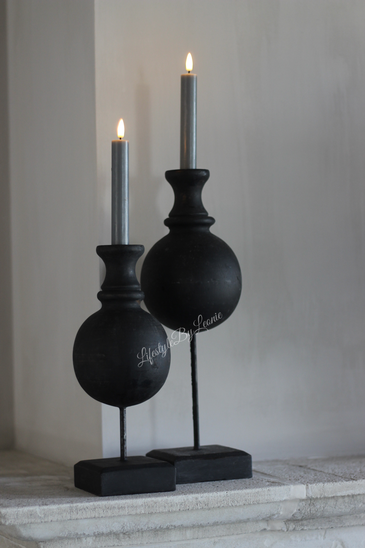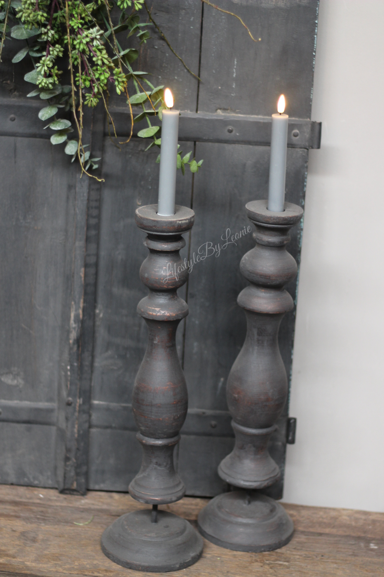 Supermooie smalle wax LED dinerkaars in een grijze kleur. Het flikkerend lichtje lijkt op een echte vlam en is bijna niet van echt te onderscheiden. Per 2 stuks.