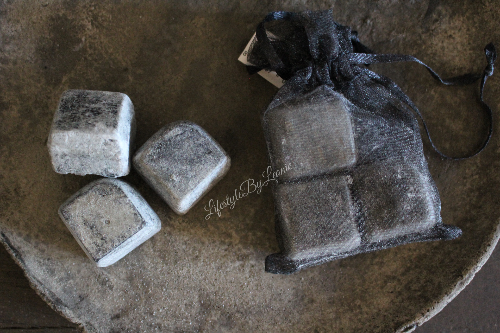 Zakje met drie mini amber geurblokjes in een zwarte kleur.