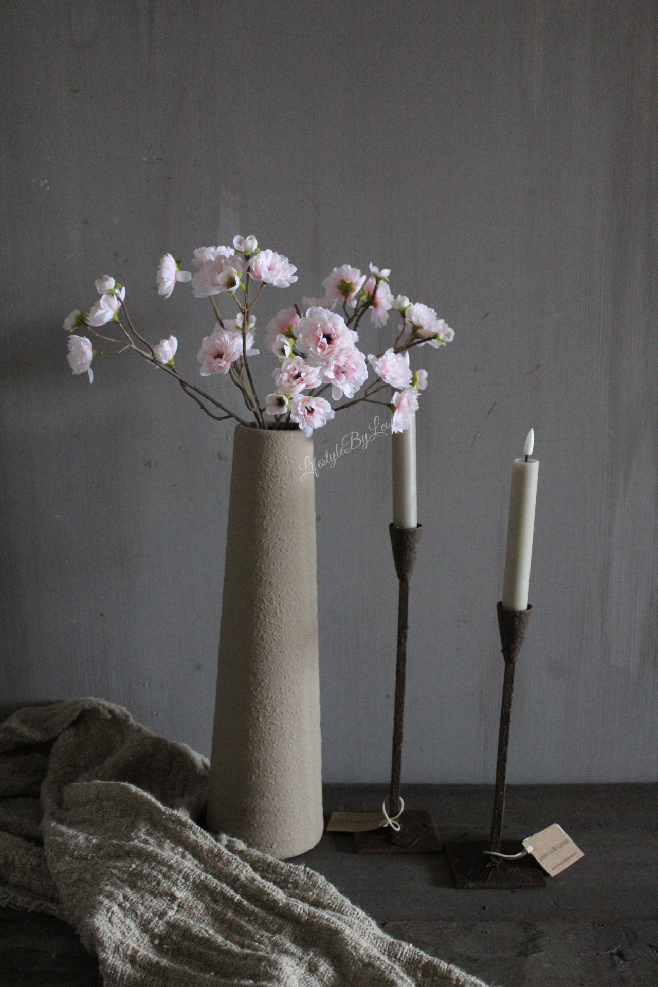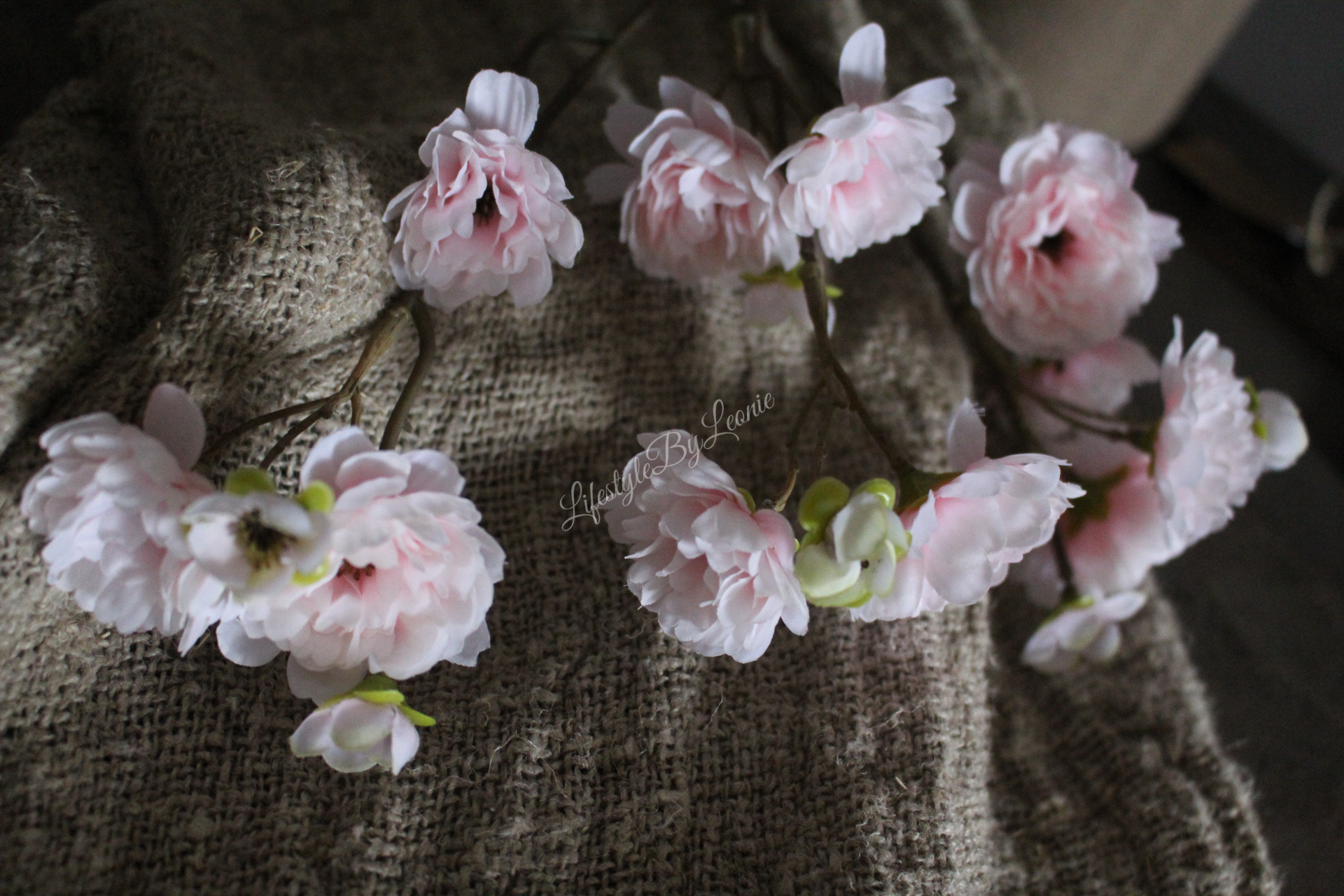 Prachtige zijden kunsttak met bloesem in een zachte roze kleur. De tak is 50 cm lang.