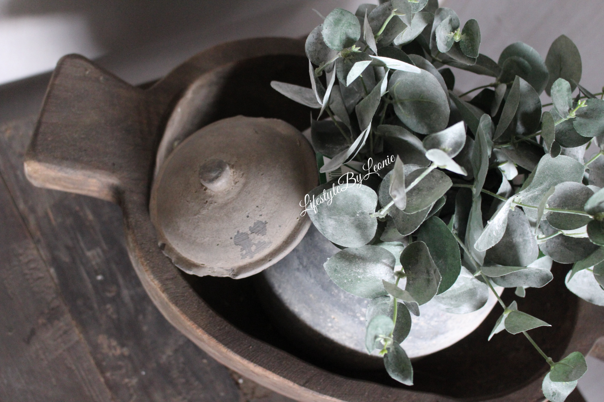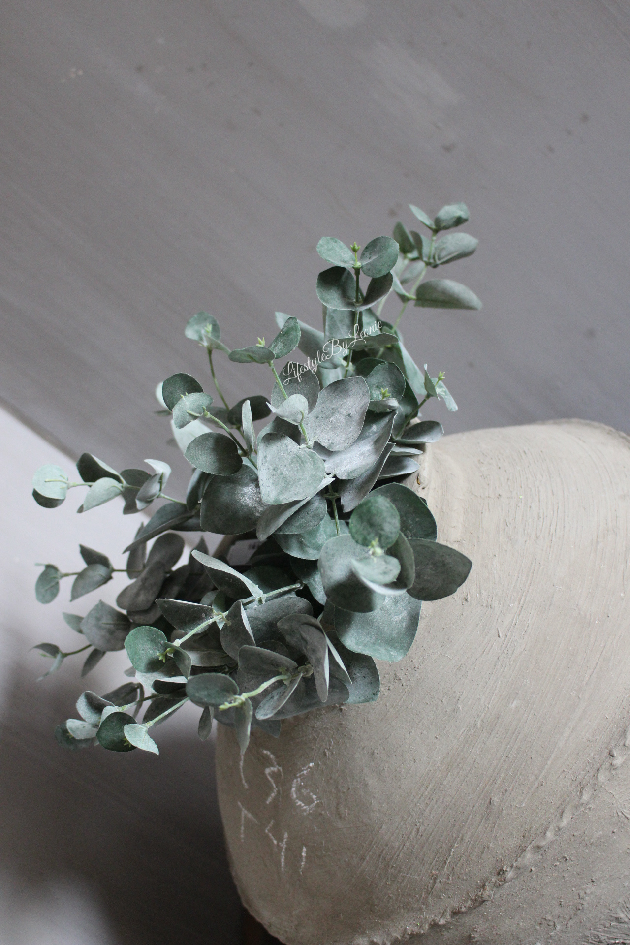 Mini bosje kunst Eucalyptus in een groengrijze kleur. Deze kunsttak is 28 cm lang.