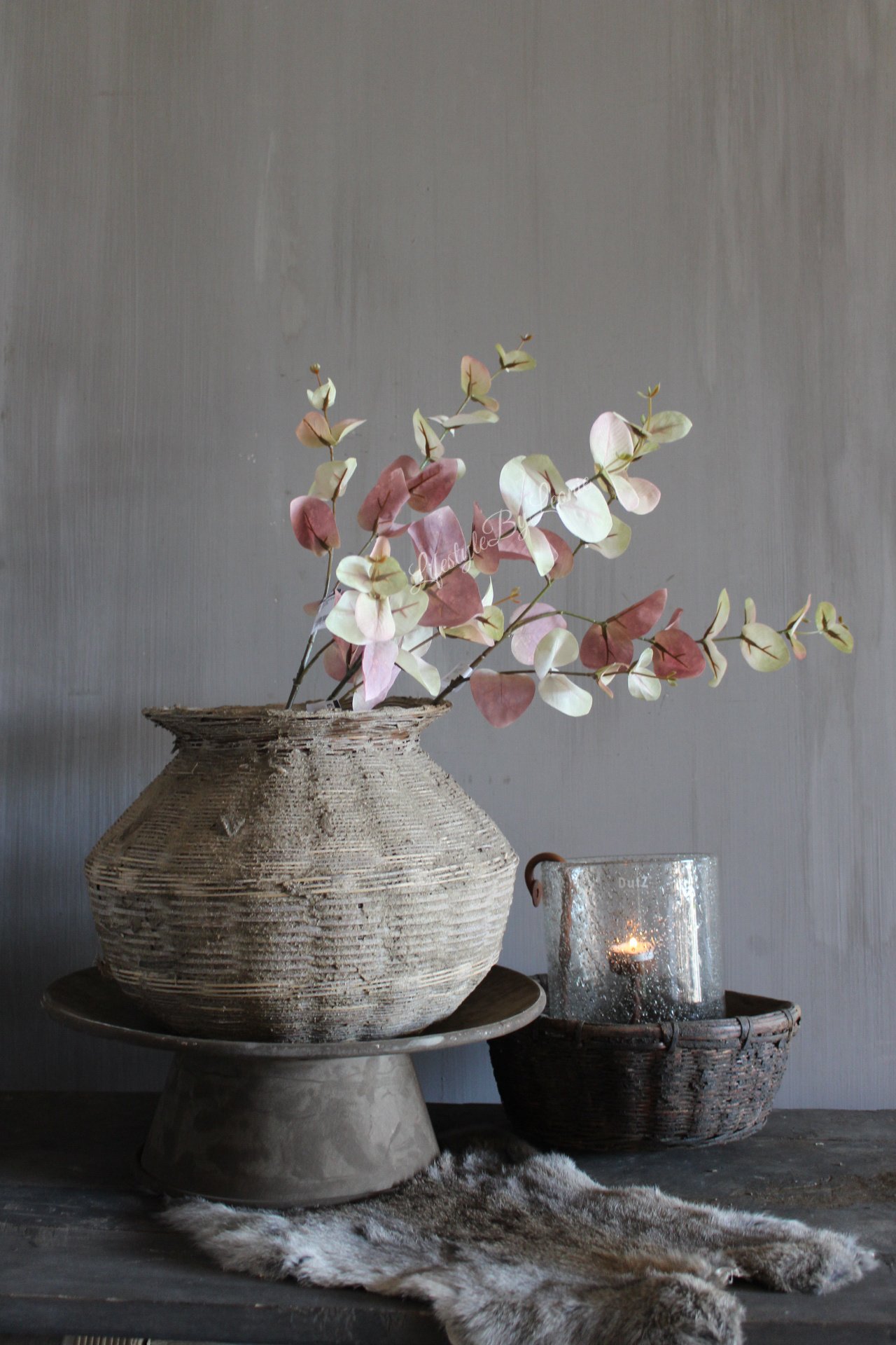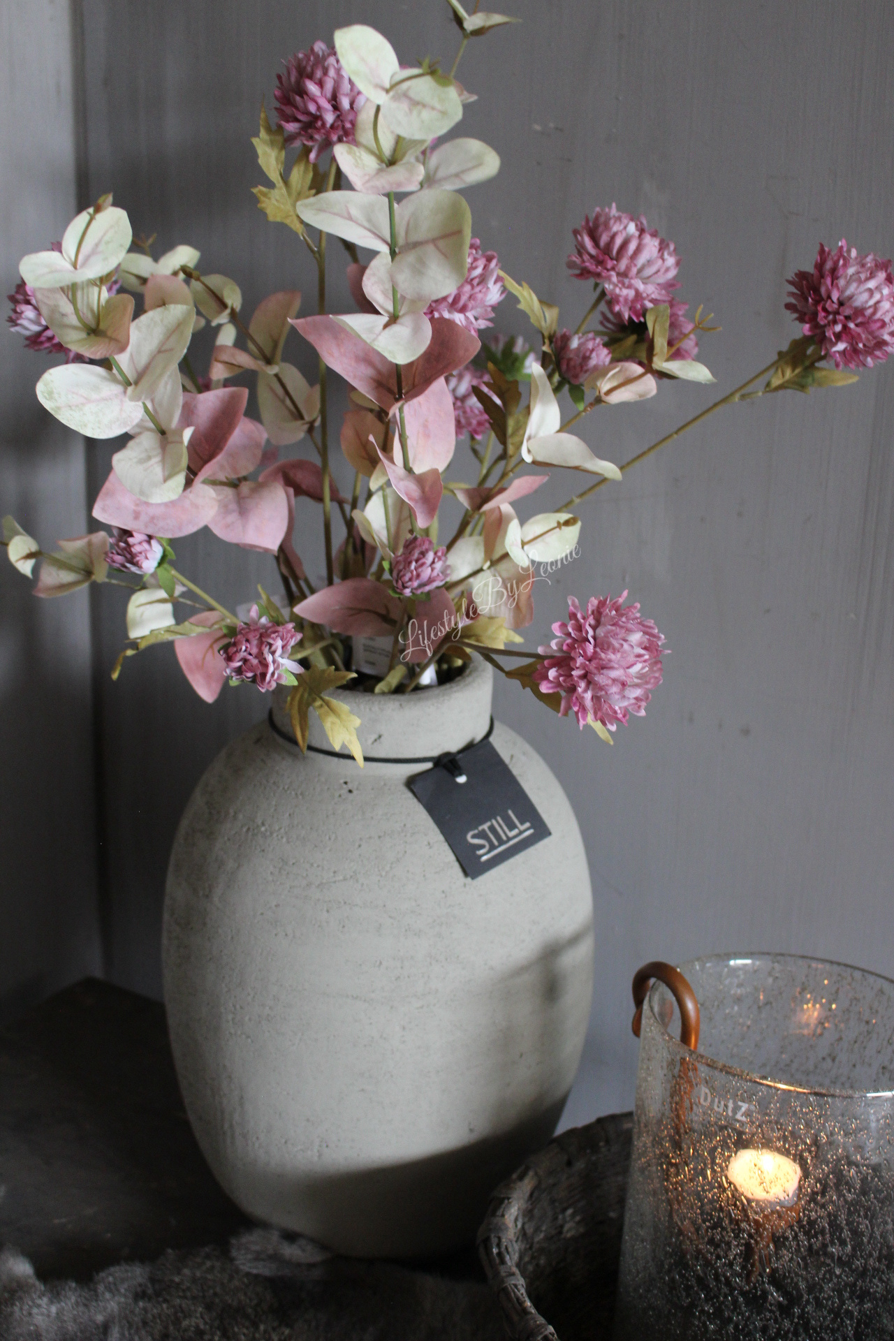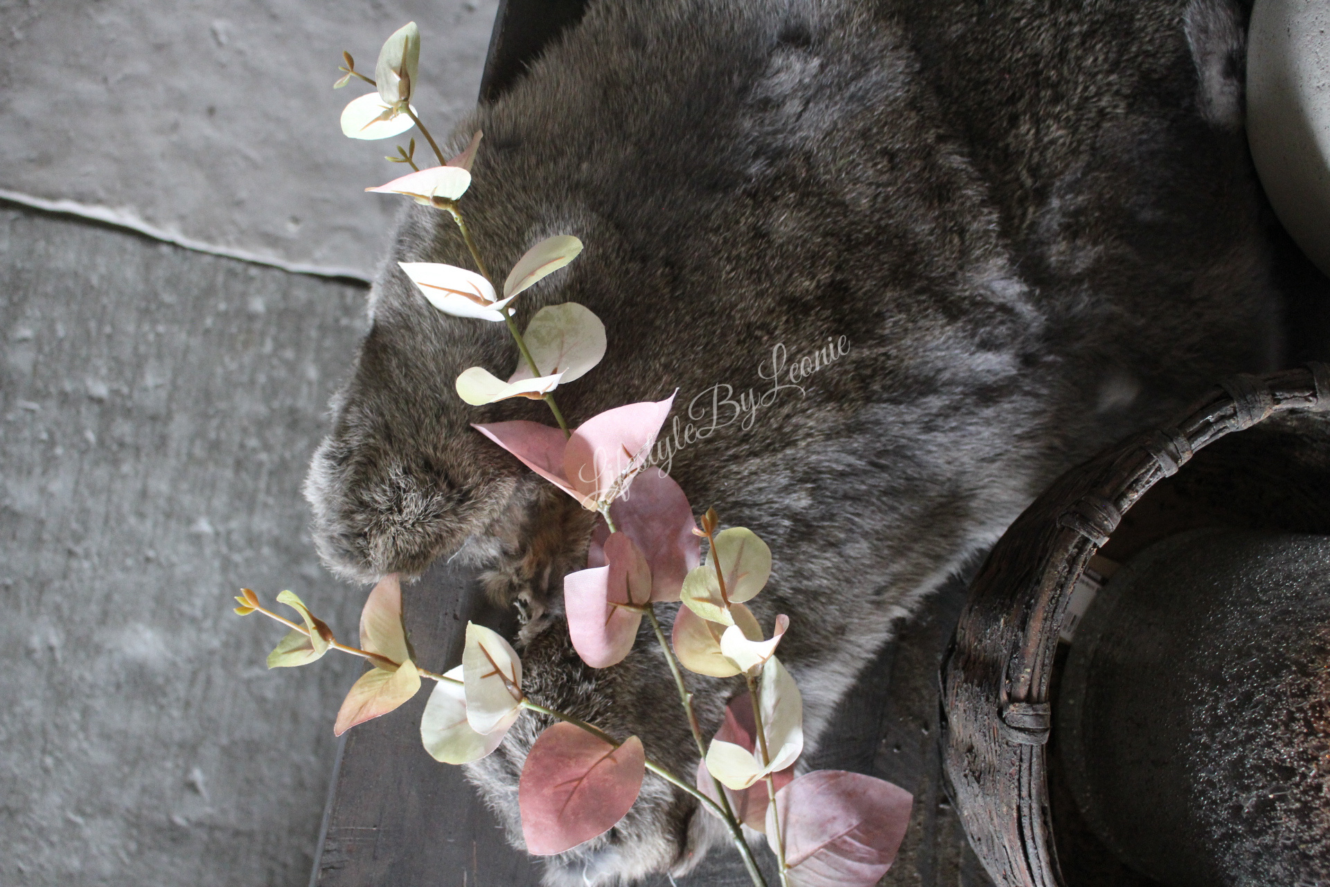 Mooie zijden Eucalyptus kunsttak in een zachte groen roze kleur. Deze tak is 87 cm lang. Mooi in een vaas of boeket.