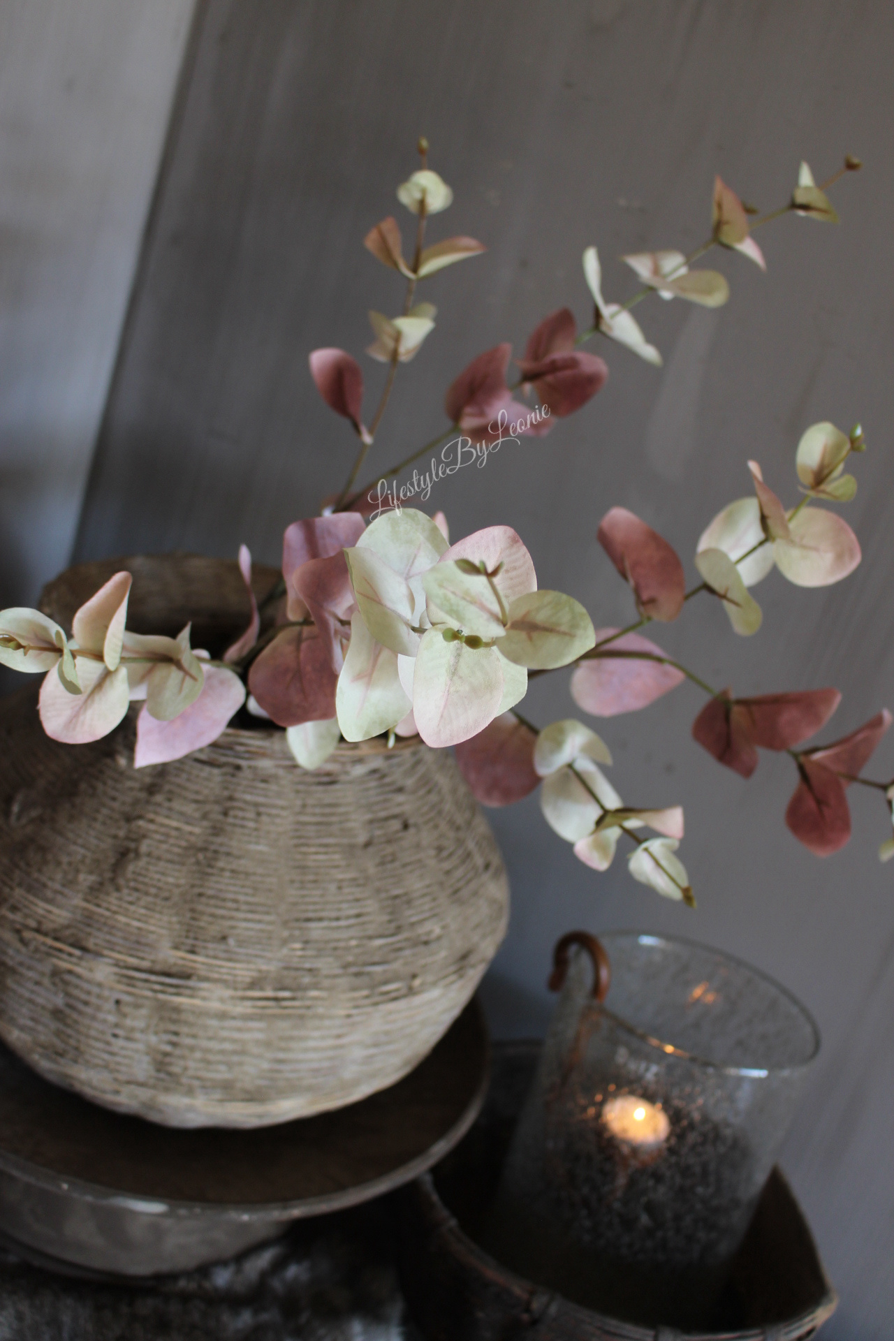 Zijden Eucalyptus tak soft pink/green 87 cm