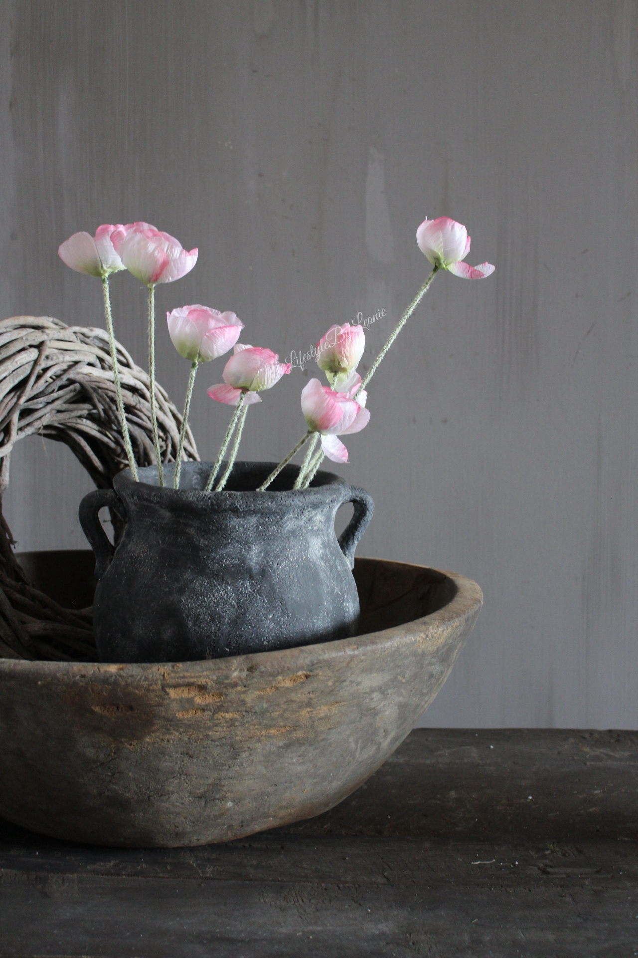 Zijden mini klaproos in een zachte roze kleur. Deze kunstbloem is 50 cm lang en staat leuk in een boeket met andere kunstbloemen.