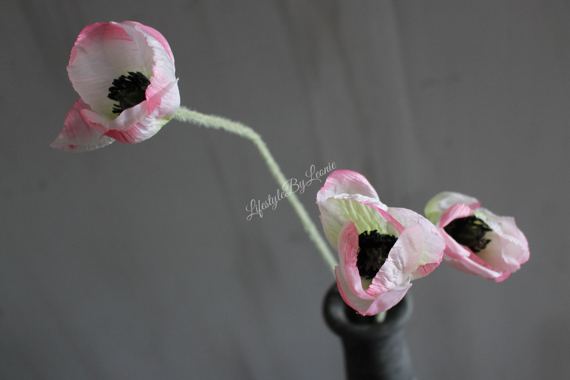 Zijden mini tak Papaver / Klaproos light pink 50 cm