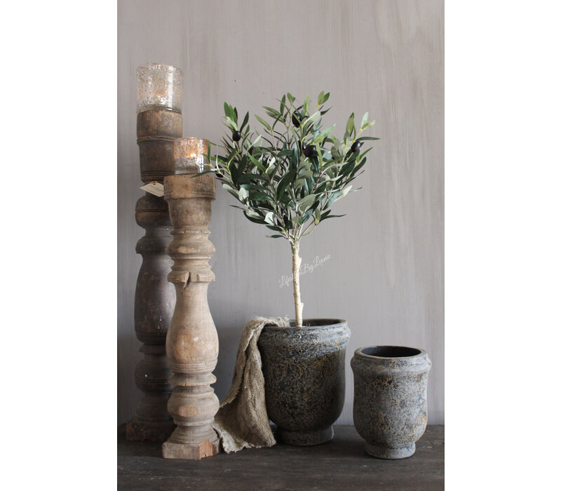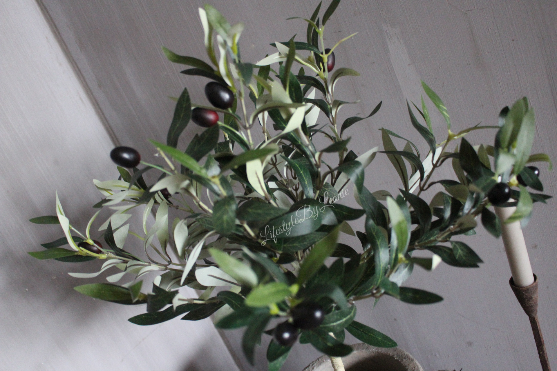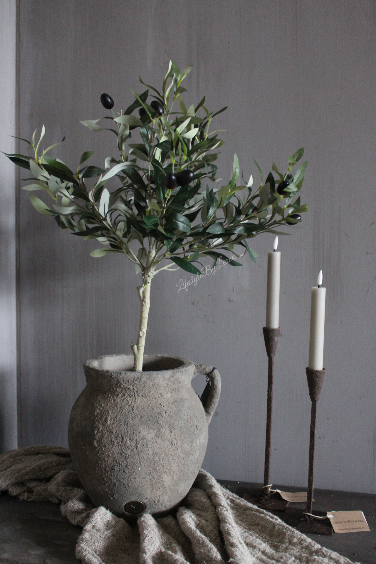 Klein zijden olijfboompje in een mooie A-kwaliteit zijden. Leuk in een kruik of pot. Het boompje is 65 cm hoog.