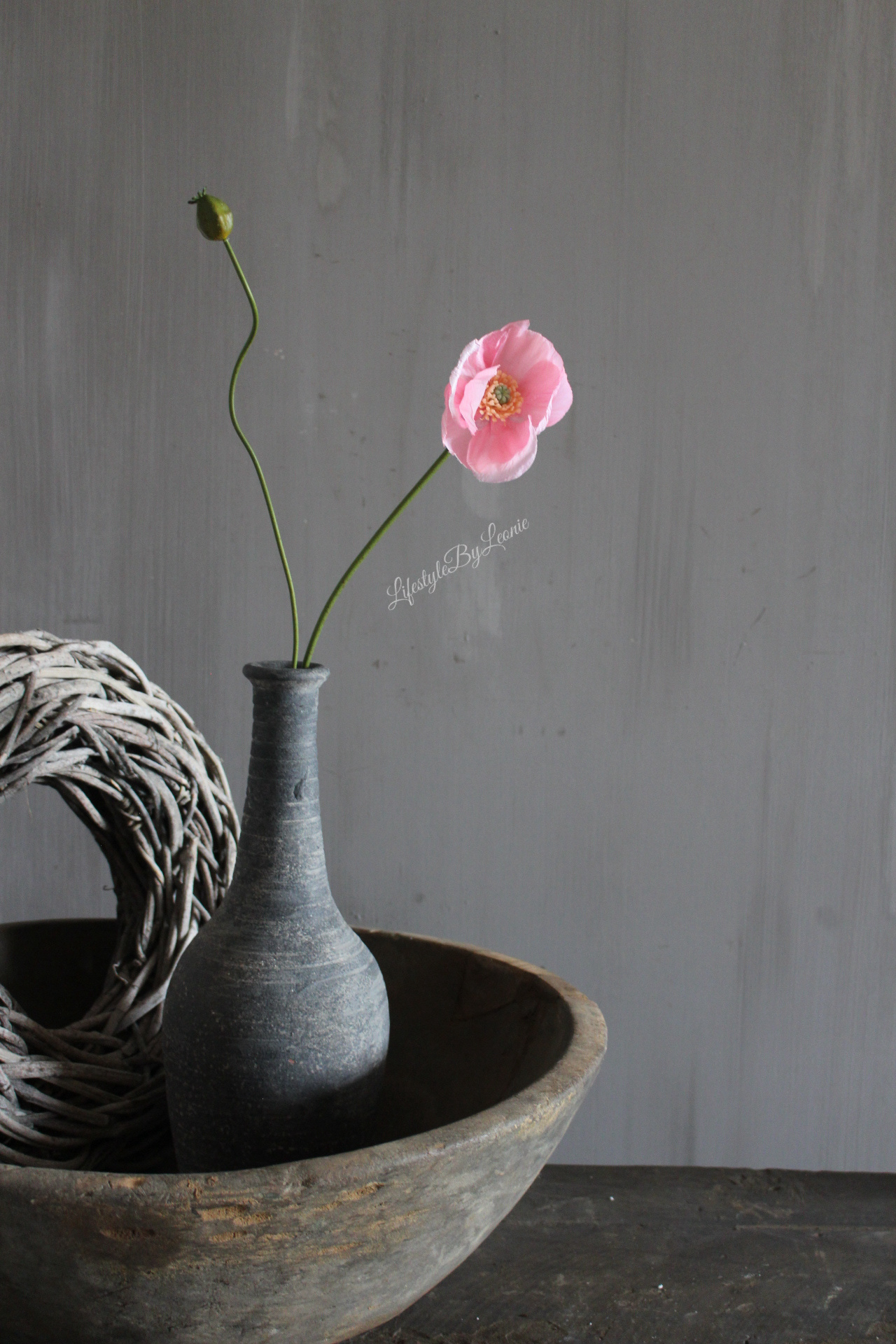 Mooi zijden Klaproos kunstbloem met lichtroze bloemen. De tak is 70 cm lang.