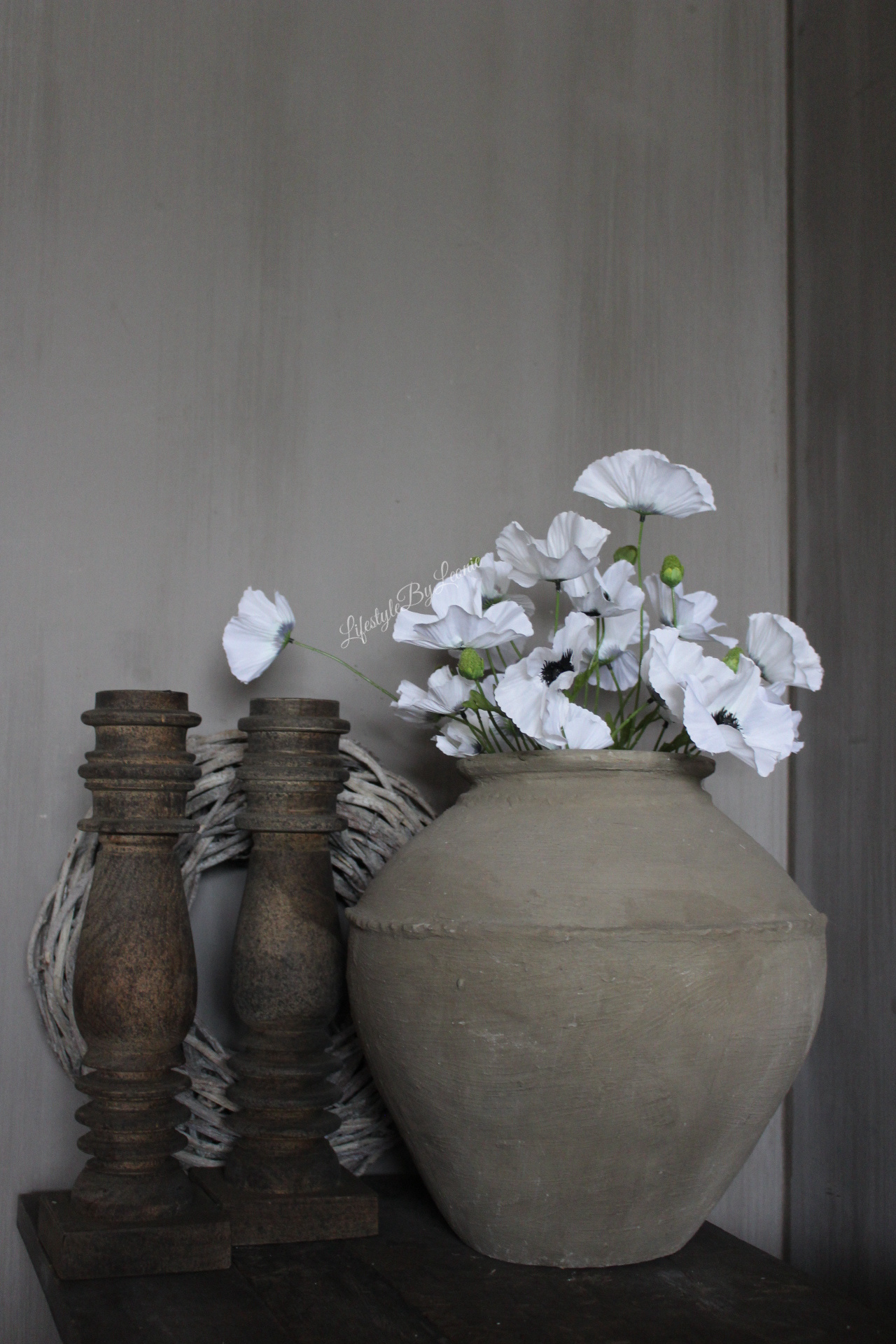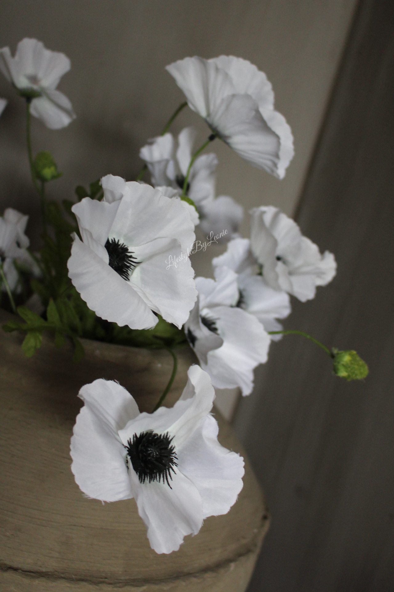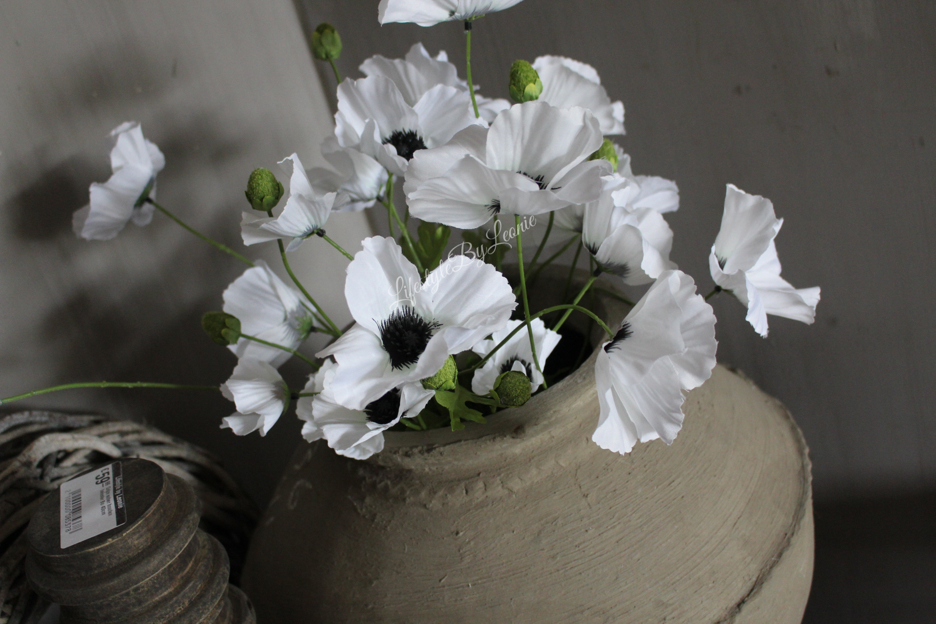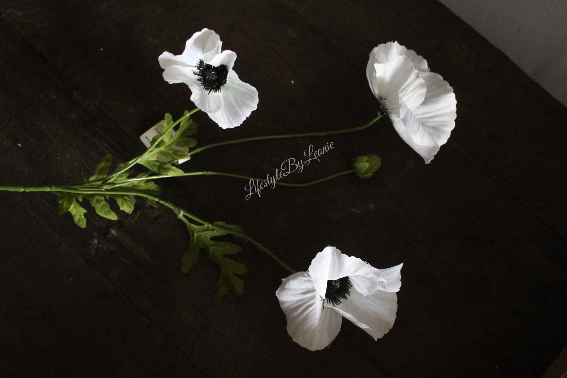 Mooi zijden Klaproos kunstbloem met witte bloemen. De tak is 70 cm lang.