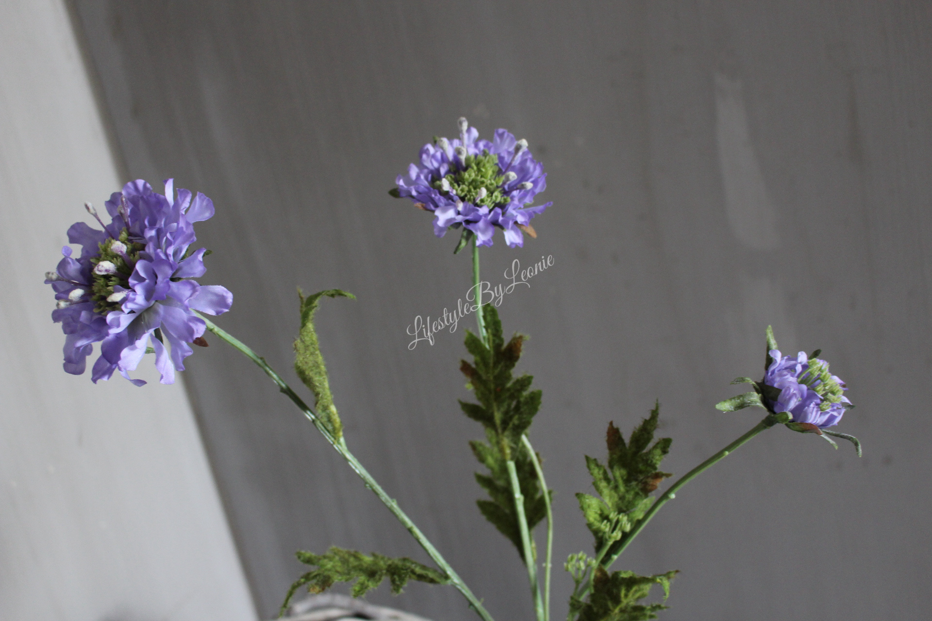 Mooie zijden Scabiosa kunstbloem met paars lila bloem. Deze prachtige tak is 66 cm lang.